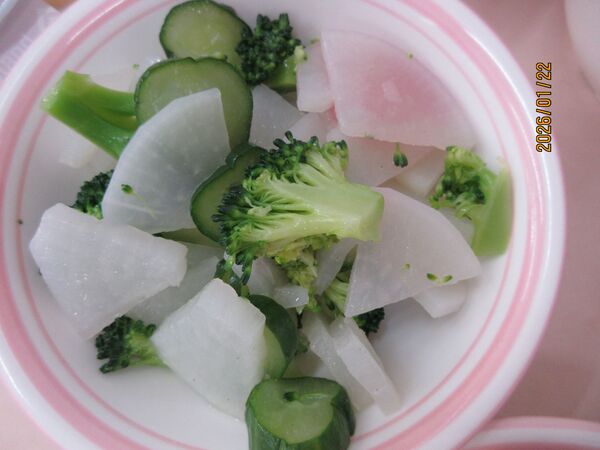 たくさん収獲することができたので、給食の献立の大根サラダに調理され、なのはな学級だけでなく川通小の子どもたちみんなでおいしくいただきました。